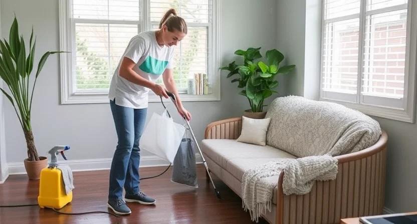 - Vacuuming and shampooing carpets (if needed) to remove dust, allergens, and stains.